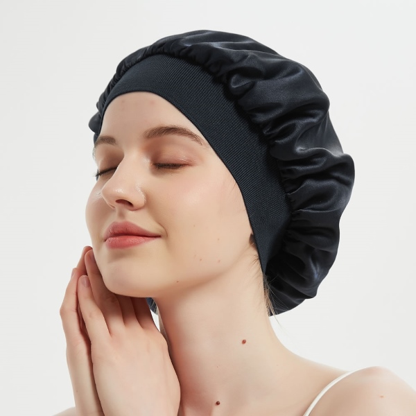 A sapkánk prémium selymes szaténszövetből készült széles pánt kialakítással rendelkezik, amely a stílus feláldozása nélkül biztosítja a végső kényelmet. A széles pántot úgy terveztük, hogy a személyre szabott illeszkedés érdekében nyújtható legyen, fényűző és biztonságos hajvédelmet nyújtva.