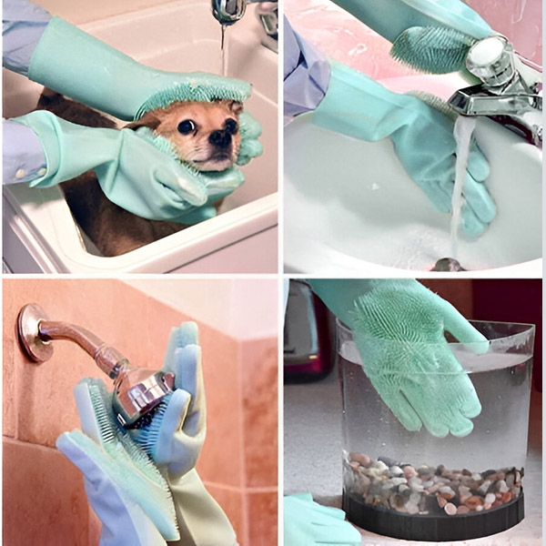 Használja mindkét kezét, hogy időt takarítson meg, és elérje az olyan nehezen tisztítható területeket, mint az arc, a lábak és a farok. A hőálló szilikonból készült kesztyűk puhák, rugalmasak és tökéletesek az alapos ápoláshoz.
