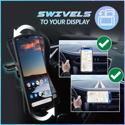 Könnyen forgatható és dönthető. A tartó szorosan rögzíthető a szellőzőnyílásba.Tökéletesen használható bármilyen okostelefont rögzítéséhez és nem mozdul el.