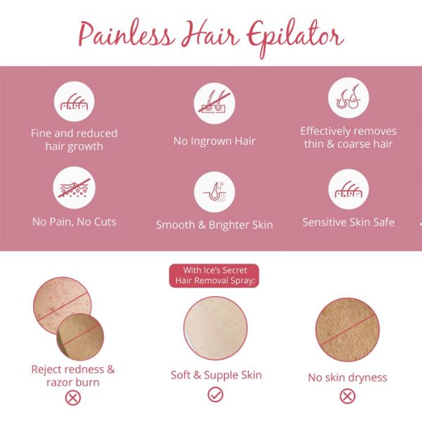 Epilátorunk könnyed, gyors és fájdalommentes szőrtelenítést tesz lehetővé, így bőre sima, gyengéd és foltmentes lesz, vágás és horzsolás nélkül. Száraz és nedves epilálásra egyaránt alkalmas. Epilátorunk használata fájdalommentes, gyors és könnyed szőrtelenítést garantál. A befejezés után bőre finom és bársonyos lesz, sérülésektől és karcolásoktól mentes. Ezenkívül nedves és száraz epilálásra is használható.