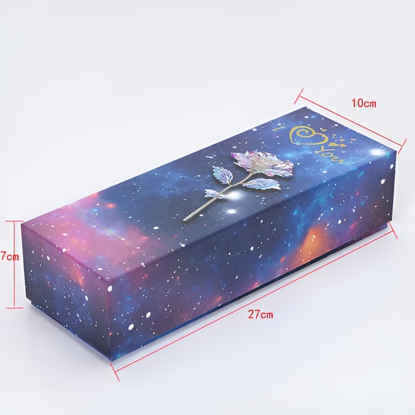 Minden rózsa irizáló, holografikus bevonattal készült, amely gyönyörűen csillog a fényben, galaxisszerű csillogást keltve, amely egyszerűen elbűvölő.