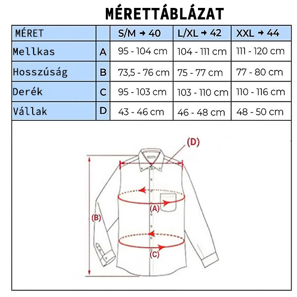 Az ing jól illeszkedik a testhez, a mellkastól a derékig finoman keskenyedve.