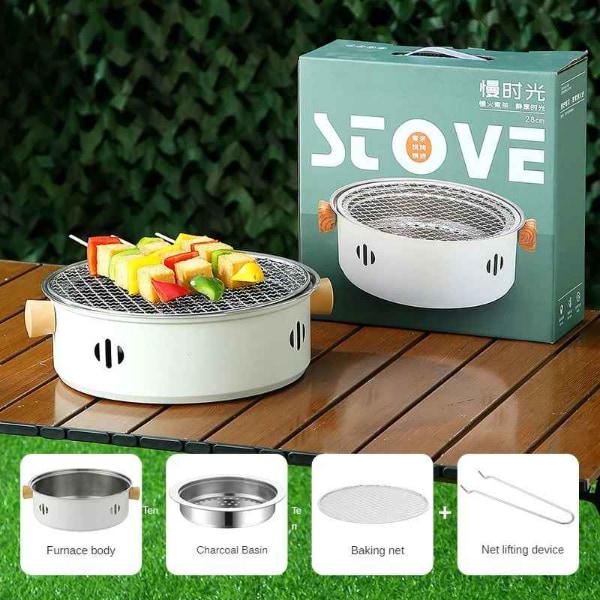 🔥 Ez a hordozható faszéngrill tartós, könnyen tisztítható és biztonságos a szabadtéri főzéshez.