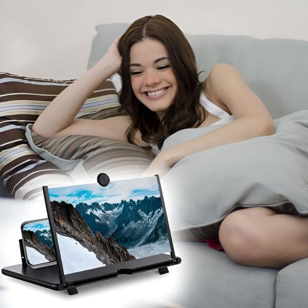 A 9,8 hüvelykes telefon képernyőnagyító fizikai optikai technológiát alkalmaz a képek, videók és egyéb mobiltelefonos fájlok megjelenítéséhez.