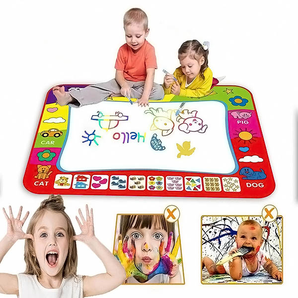 📦 Egy készletben: 2 filctoll és egy nagy, 80 x 60 cm-es rajzszőnyeg.